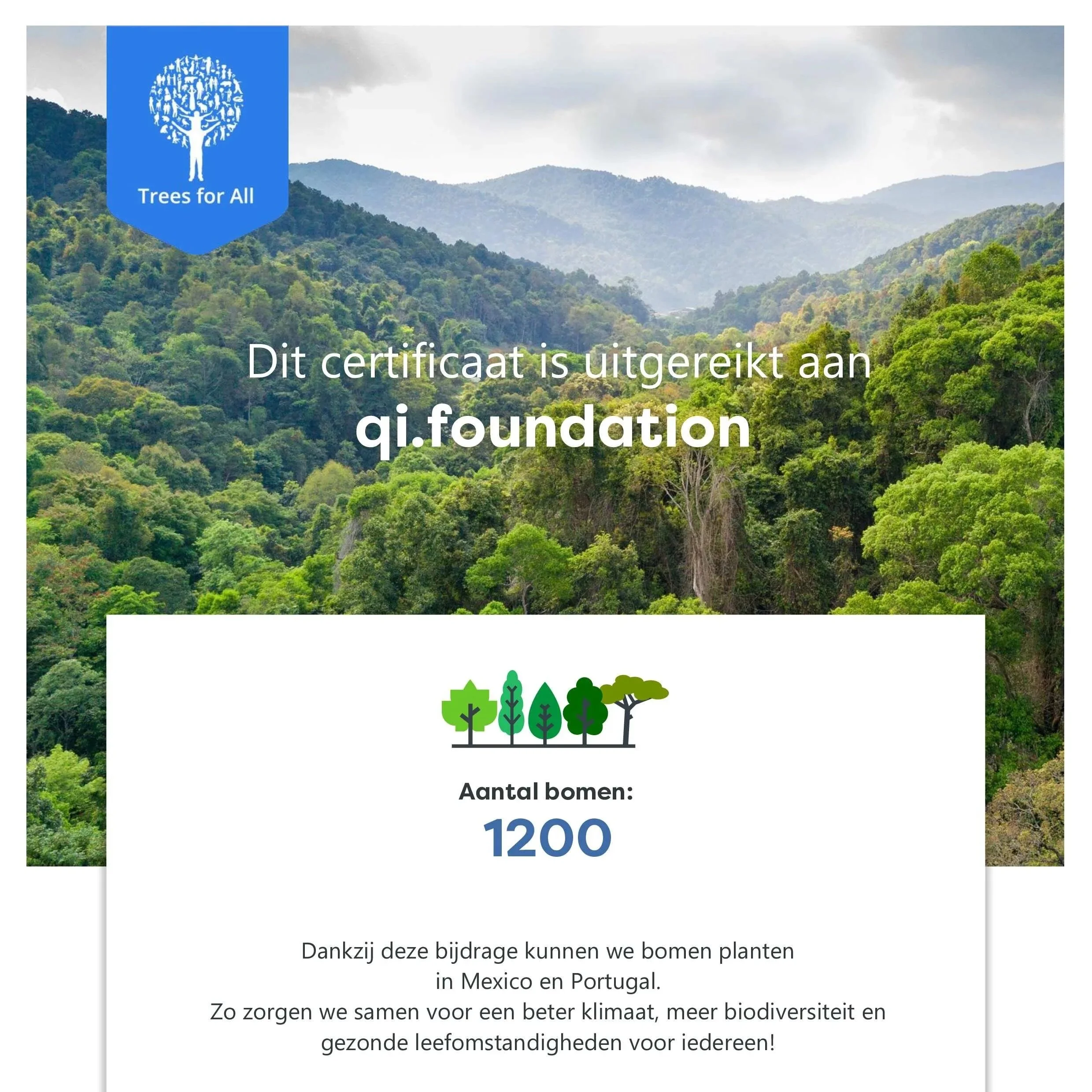 1200 trees were planted on our behalf in Portugal and Mexico